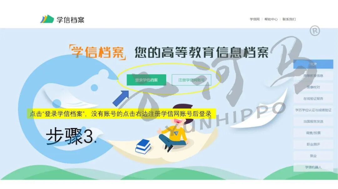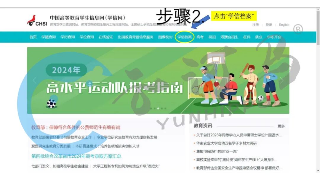 在首页导航栏找到“学信档案”,并点击。