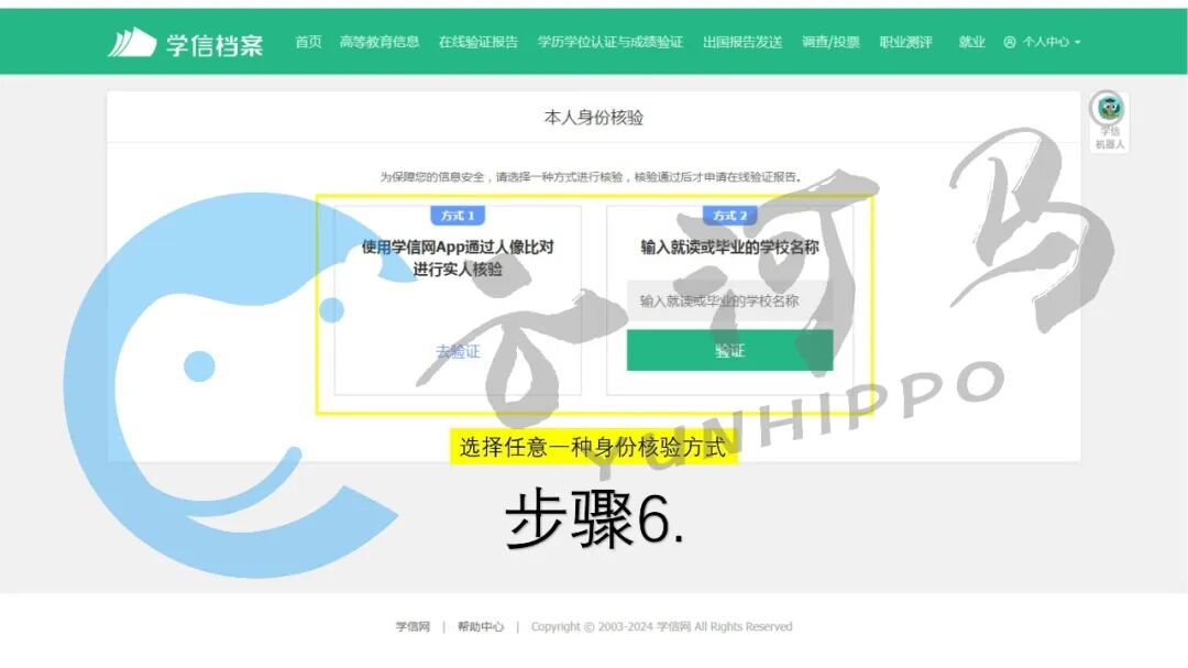 选择身份核验方式,并进行核验。