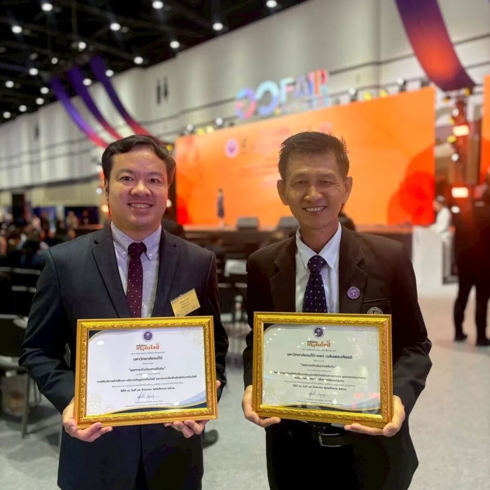 梅州大学技术诊所因在"促进科学技术与创新提升社区生产及经济潜力"活动中表现卓越,荣获多项大奖。2025年8月15日,梅州大学农业学术研究与推广办公室主任纳塔蓬·劳罗博士率项目代表,在曼谷诗丽吉王后国家会议中心G层主会场,从泰国高等教育科研与创新部常务秘书处手中接获奖项。