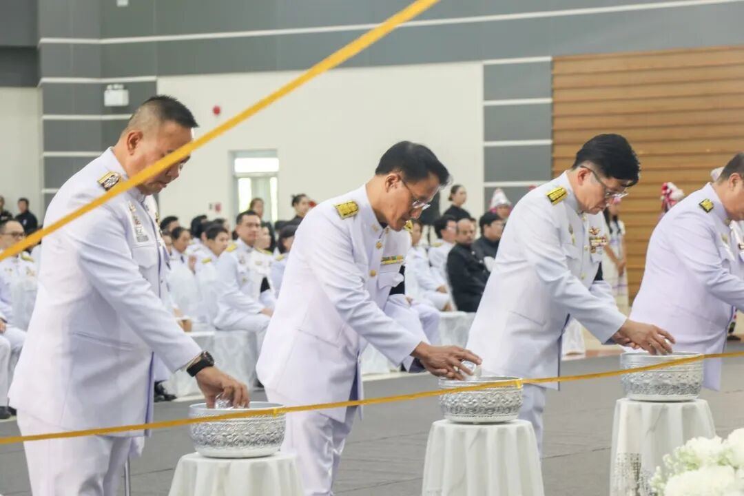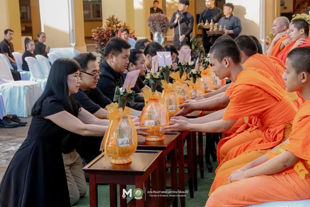 2025年10月27日星期一,梅州大学举行布施仪式,以敬献功德,恭送诗丽吉王后殿下——九世王王母殿下仙驾升遐。