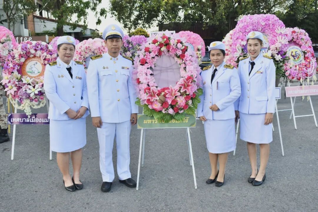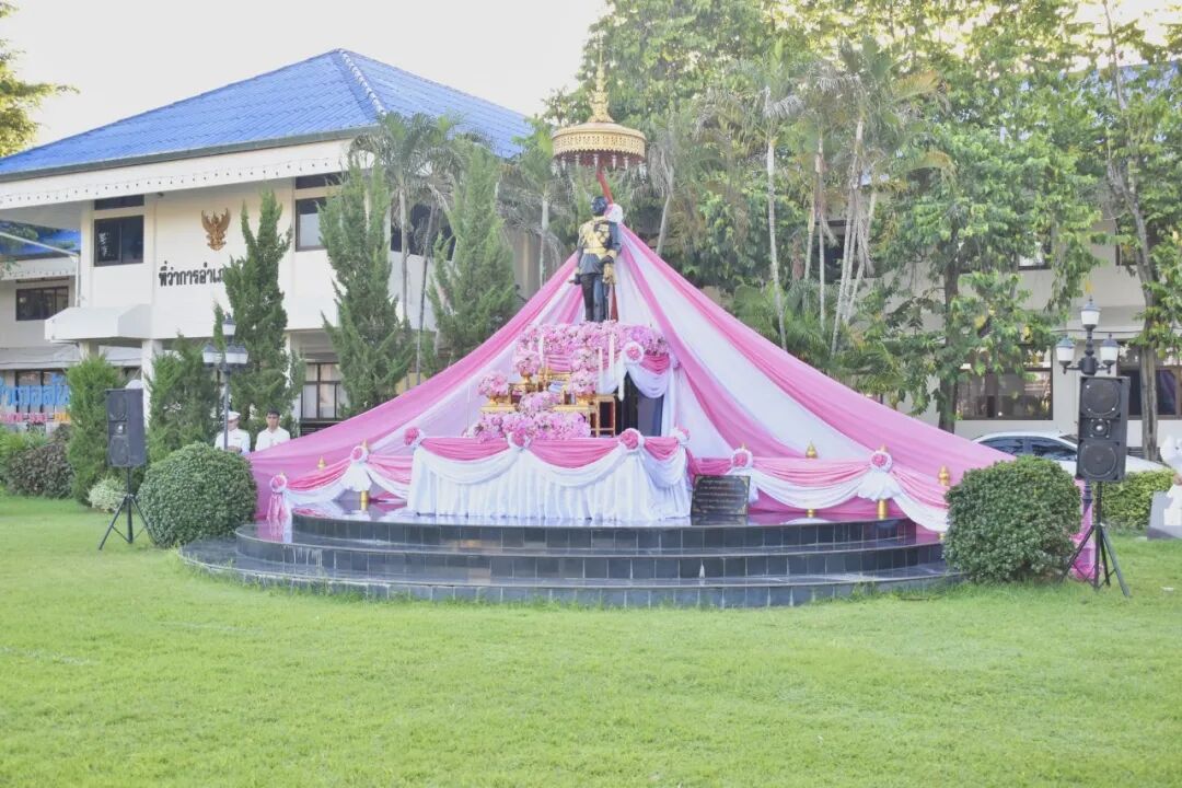 2025年10月23日星期四,梅州大学动物科学与技术学院院长助理教授博士通连·布居姆率领学院行政代表及教职工代表,在清迈府山赛县县政府前的拉玛五世王朱拉隆功大帝御像广场,参加2025年度"朱拉隆功大帝纪念日10月23日"御像献花典礼,共同缅怀这位伟大君王的浩荡皇恩。