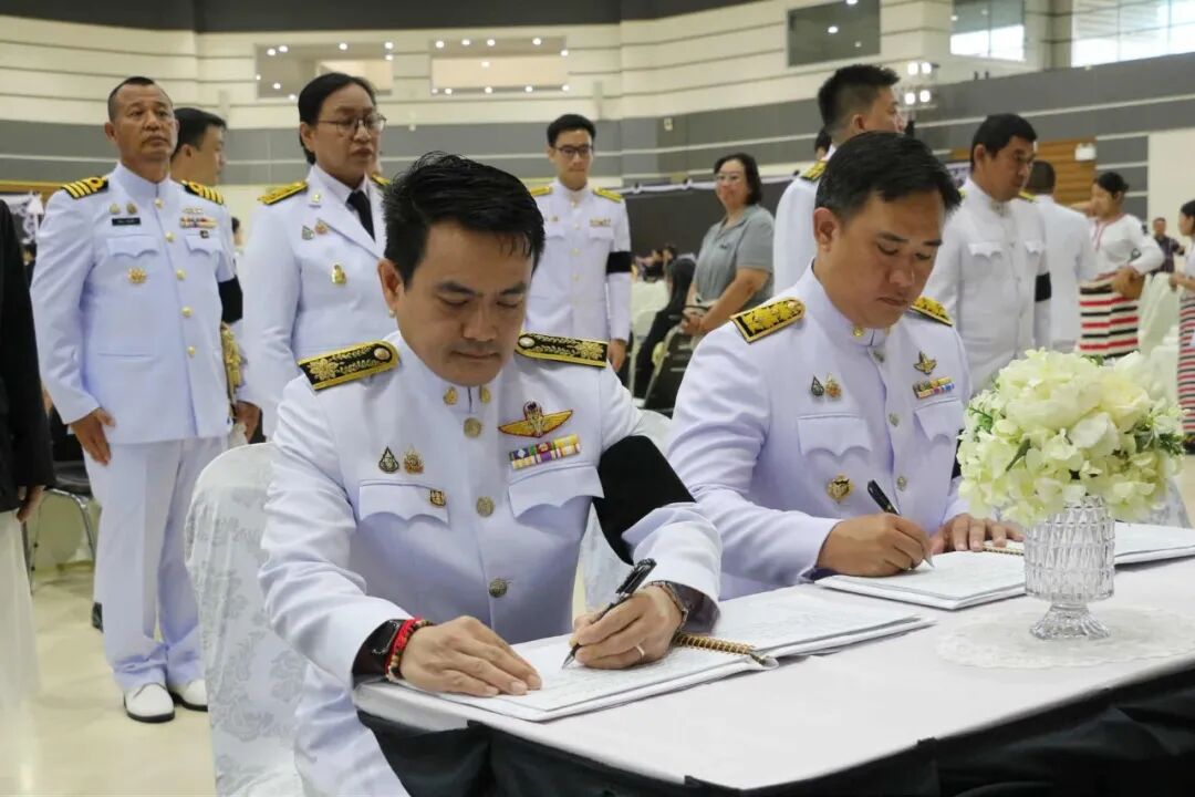 2025年10月26日,梅州大学管理人员参加在清迈府清迈市第七周期圣寿国际会议展览中心举行的诗丽吉王后——九世王王母殿下灵柩瞻仰仪式,并签署悼念簿。
