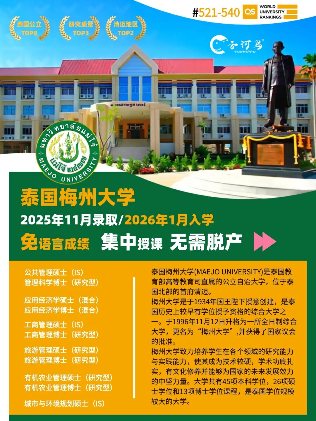 泰国梅州大学本硕博2025年7月入学批次已圆满结束,2026年入学申请(本硕博)现已启动,欢迎垂询!